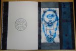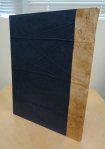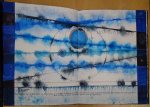 This work developed after completing The Power of Silence by Carlos Casteneda. Conceived with a limited palette of color, the book is bound onto strings, suggestive of the lines of intent that the book illuminates. Brained tanned leather covers the case. Within the three folios each share a specific idea from Silence. Selected Quotes are added to the work for greater illumination.