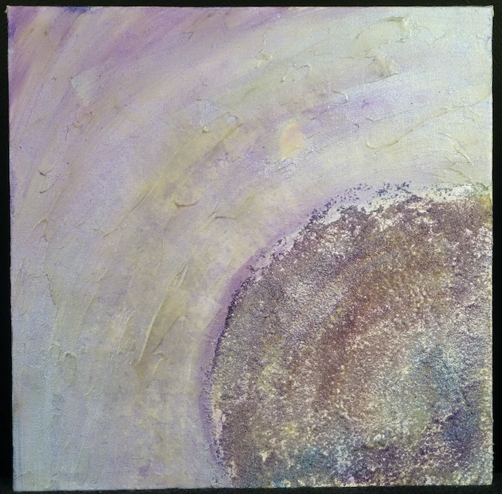 I am not a person who uses a lot of pearl and shine in my work… This piece, from the workshop, is that wonderful contrast between coarse and fine pumice and applied in a way that gives this an out of this world affect. Love the purples and shine to the paints added on top of that base with tons of water which allowed the final layer to dry like a watercolor painting in acrylic.