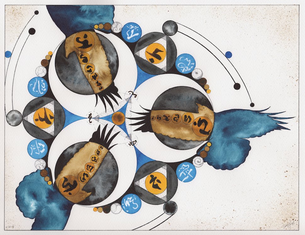Triple Raven, Ink on Paper, 14×22